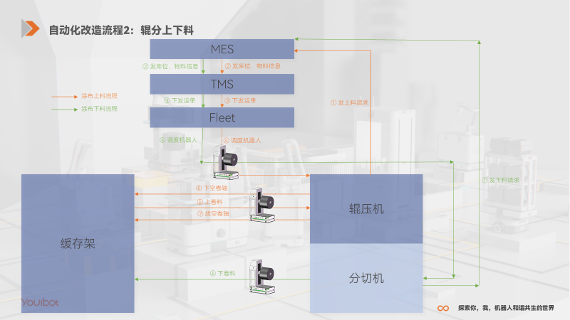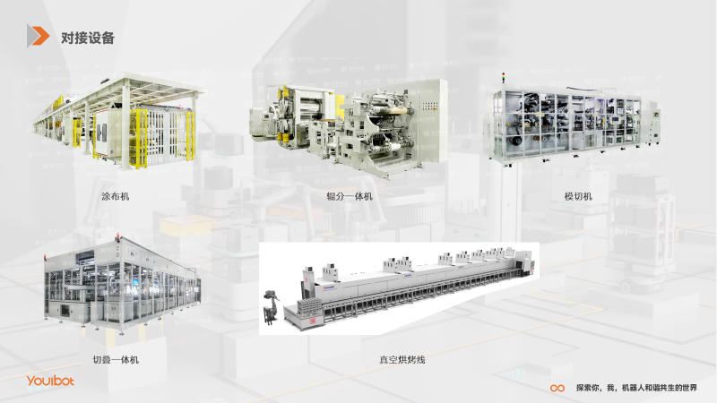 该车间希望通过导入机器人实现涂布-辊压-分切-模切-烘烤-切叠全流程物流自动化改造, 实现智能化升级。
