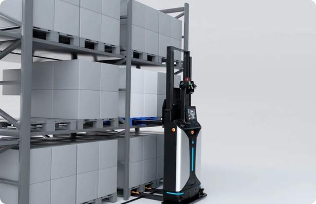 窄体堆垛型智能叉车标配深度相机,进行货位的安全识别和精准对接。通过提升货叉高度,可以实现灵活对接2-3层的横梁货架。