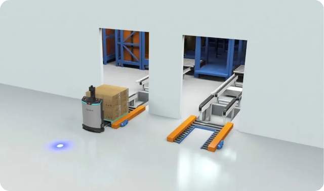 平面搬运型智能叉车可以灵活对接低位输送线上下料,实现物料的转运。窄体堆垛型智能叉车可以灵活对接产线区域的滚筒、机台等设备,转运线边物料至缓存区,及时配送物料至线边,响应线边生产节拍,提高线边物料的流转效率。
